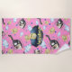 Send your little hero back to school or prepare them for their first day of preschool or kindergarten with this cute and modern watercolor police print towel. It features a cheerful pink background adorned with colorful stars, clouds, police badges, and helicopters, with a K-9 dog as the pilot. The customizable area in the hat is where you can add your child's name and lucky number. This stylish towel will make any child feel special, as it is uniquely created just for them.