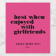 Vergnügen Sie sich mit Weinetiketten für Ihr Girl's Night Out Wine Party. Das Weinetikett sagt: "Beste Zeit, wenn man mit Freundinnen genossen wird - Girl's Night Out", aber man kann seine eigene Formulierung anpassen und die Hintergrundfarbe vom blassrosa in eine andere Farbe ändern.