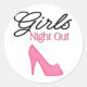 Shirts für die letzte Flut der Briden. Bachelorette Shirts mit den Worten Girls Night Out und die Grafik eines rosa High Heel Schuh. Design verfügbar auf Shirts, Kappen, Tasse, Steinen, Reisebügeln, Schaltflächen und vieles mehr.