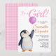 Girl's Penguin Pink Baloon Watercolor Baby Shower Einladung