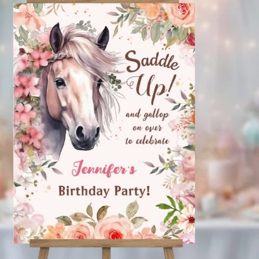 Girls Pferd 6. Geburtstag floraler Wildsattel Einladung