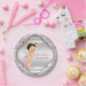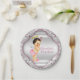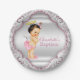 Engel Taufpapier Teller mit einem bezaubernden Engelbaby Mädchen auf einem schönen rosa und silberfarbenen Hintergrund. Sie können den gewünschten Text hinzufügen, um diese Teller für Taufpapier für kleine Mädchen zu personalisieren.