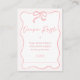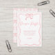 Girls Pink Bow Babydusche Windelwanne Beilage Visitenkarte