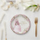 Adorable rosa und goldene Babydusche Teller mit einem kleinen Mädchen in rosa Spitzen-Bassinette auf einem schönen rosa und goldfarbenen Hintergrund. Diese eleganten, rosa- und goldfarbenen Baby-Dusche-Teller können in Ihrem Schriftart-Stil und in Ihrer Farbwahl individuell gestaltet werden.