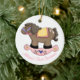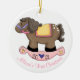 Niedliches Baby's erste Weihnachtsschmuck, mit Grafik eines braunen Rockpferdes auf rosa Felsen. Personalisieren Sie den gesamten Text, um zu lesen, was Sie gewollt haben. Die Rückseite ist identisch mit der Vorderseite und der Text ändert sich auf beiden Seiten zur gleichen Zeit, wenn Sie personalisieren.