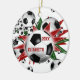 Weihnachtsschmuck für Mädchen mit einer Flut von scheinbar endlosen Fußballbällen und Comic-ähnlichen Rot- und Grünsternformen, um dem Design ein "POW!" zu verleihen - mit ihrem Namen und Jahr ~ von katz_d_zynes