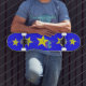 Niedlichen kleine gelbe Sterne mit einer Blume füllten die Nummer 10 für das Skateboarddesign eines Mädchens. Eine ganz besondere Geschenkidee für den 10-jährigen Gal, der zum Skate Lieben hat. Originelles Design von Anura Design Studio.
