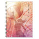 Dieses Beachvolleyball-Wendelheft für sie zeigt das farbenfrohe Mischbild eines silhouetted weiblichen Volleyballspielers mit langen Haaren, die über den rechten Arm gesprungen sind, einem lebendigen Motiv aus dem Sonnenuntergang und übergroßen Volleyballs, einer im Vordergrund und einer im Hintergrund - mit ihrem Namen - von katz_d_zynes