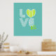 Ein lustiges Poster für Tennisspieler und Tennisspieler. Dieses Wandkunstposter liest "Liebe all" mit einem neongrünen Tennisball-Design.