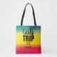 Mädchen reisen schwach... Gedenken Sie Ihre Reise! Grüner, gelber und roter Hintergrund mit anpassbarem Text.