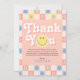 Dieser Groovy Girls 2. Geburtstag danke, dass eine Karte Retro-70er-Vibes mit einem niedlich rosa Thema, Blumenakzente und einem pastellfarbenen karierten Muster erweckt. Vollständig anpassbar, enthält es Platz für Ihre eigene Danksagung Nachricht. Ideal für einen "Two Groovy" Geburtstag.
