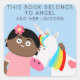 Niedliches Cartoon-Design eines Mädchens & Einhorns mit Sondertext.