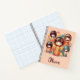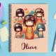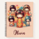 Dieses personalisierte rosa Notebook verfügt über niedliche japanische kokeshi Puppen in Aquarellfarbe.