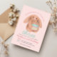 Girls Whimsical Cute Pink Bunny and Cake Birthday Einladung
