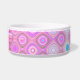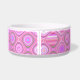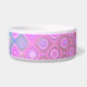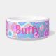 Weiße Keramikhundenahrung/Wasserschüssel, wenn die abstrakten Grafiken in rosa, in Blauem getan sind, Aqua und Grün. Personifizieren Sie den mutigen rosa Text für Ihr Haustier oder als große Geschenkidee für jeden möglichen Haustierinhaber.