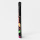 Girly abstrakter schwarzer Hintergrund mit hellen Blumenfarben in den Rosa, in den Purpur, in den Blues, in den Grüntönen, in den Rottönen und in den Gelbs für das iPhone5. Personifizieren Sie mit Ihrem Namen oder Initialen, oder verlassen Sie freien Raum.