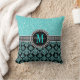 Girly Aqua-blauer Glitzer-Monogramm-Damast-Name Kissen