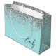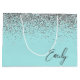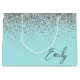 Girly Aqua Blue Silver Glitzer Monogram Große Geschenktüte