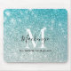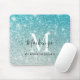 Girly Aqua Blue Silver Ombre Glitzer Monogram Name Mouse Pad
