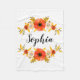 Fleecedecke mit korallenroten Watercolor-Blumen auf weißem Hintergrund und kundengerechtem Text.