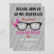 Girly Aussenseiter-Glas-u. Herz-Geburtstags-Einladung. Ein wirklich Spaß und einzigartige eine Geekgeburtstags-Party Einladung. Aufmachung eines Paares starker schwarzer Gläser mit einem roten Herzen im mittleren und rosa Bogen auf einer Seite der Gläser. Schriftartwahlen sind Computer uber Tech und der alter Schule wie und sind 100%, das mit Ihrem wedding Save the Date Details kundengerecht ist! Hintergrund hält zwei tonte das Grau, das Streifen auf ihm hat und macht den Typografie-Pop! Sie finden rote Herzen des Pixels und ein rotes Pixelherz auf der Rückseite dieser Geekgeburtstags-Party Einladung. Und wenn Sie überhaupt also sind, geeky können Sie Ihre Hochzeit am Tortentag haben, wie gekennzeichnet auf diesen, retten die Daten!