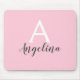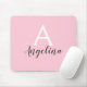Personalisiertes Monogramm, gürlich blassrosa Mauspad mit weißem und grauem Schriftsatz. Dieses hübsche Mauspad kann leicht mit Ihrem eigenen Vornamen und Monogramm Initial personalisiert werden. Sie können sogar die Textfarbe und den Stil des Schriftartes mit der Option Anpassen ändern.