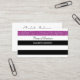 Personalisieren Sie diese moderne schwarz-weiße weiße, horizontale Streifen Visitenkarte mit einem glitzernden lila Glitzer-ähnlichen Streifen durch Hinzufügen Ihres Namens und Unternehmens. Dieses trendige Glam-Grafikmuster-Design hat einen Platz auf der Rückseite, um Ihre Kontaktinformationen inklusive Ihrer Social Media-Handles hinzuzufügen. Flachbild, NICHT Glitzer.