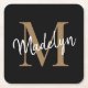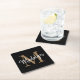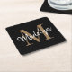 Girly Black Gold Monogram Elegant Modern Script Square Paper Untersetzer.Leicht personalisieren Sie diesen modernen, eleganten quadratischen Untersetzer mit Ihrem individuellen Monogramm und Namen.