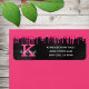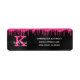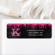 Dieses trendige und einzigartige Glam Girly Design verfügt über heiß rosa Fuchsia Magenta Glitzer Tropfen an der Spitze und ein großes individualisierbares Monogramm in hellrosa auf dem verlassen in beliebter Serif Typografie zusammen mit einem anpassbaren Namen in Weiß in populären Drehbuch mit einem handgeschriebenen Look. Auf der rechten Seite finden Sie einen anpassbaren Namen und eine Rücksendeadresse in der beliebten, trendigen Sans Serif Typografie auf einem eleganten schwarz grauen Onyx gebürsteten Metall Hintergrund. Sie können diese Bezeichnungen personalisieren, indem Sie den Text in der Produktvorlage ändern.