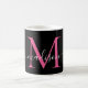 Girly Black Hot Pink Monogram Elegant Script Kaffeetasse
