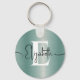 Girly Blue Brushed Metal Monogram und Script Name Schlüsselanhänger