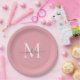 Girly Blush Pink Gray Monogram Eleganter Script Na Pappteller