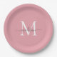 Einfache, moderne, rosa, graue Monogramm Feminine Script Name Paper Plate