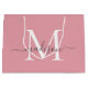 Girly Blush Pink Monogram Grey Elegant Script Name Große Geschenktüte