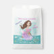 Lassen Sie Ihr Under the Sea Party mit diesen zauberhaften, Brünetten Mermaid Gefallen-Beuteln ausklingen, die eine süße Meerjungfrau mit braunem Haar und einem glitzernden rosa und lila Schwanz bieten. Fügen Sie Ihren Geburtstagsmädchen Namen, Alter und eine magische Danksagung hinzu, um Ihre Gäste zu erfreuen und Ihre Mermaid-Feier perfekt zu gestalten.