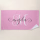 Erstellen Sie Ihre eigene elegante mädchenhafte Kalligrafie mit Monogramm hellrosa individuelles Strandtuch. Passen Sie das personalisierte Schwarzweiß-Monogramm an... einschließlich Schriftart-Farben, Kalligrafiestyles und Größen. Ein hübsches Geschenk für Ihre Tochter, die Uni zu schenken. Geschenkidee im Mehrfamilienhaus. Passen Sie die Größe und/oder Platzierung an, wenn Ihr Monogramm extra dekorativ ist.