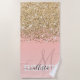 Girly Chic Gold Confetti Pink Gradient Monogram Strandtuch