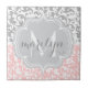 Girly Damask Wirbel Rosa und Grau Mit Monogramm Fliese