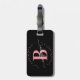 Die personalisierte Gepäckmarke für mit Monogramm Gepäck wird von Girly, minimalistisch, modern, schwarz und rosa geschrieben. Mit einem Monogramm-Initial- und einem gürtelhaften Namensschriftskript in einem handgeschriebenen Kalligraphie-Schriftart mit Schwänzen und gepunktetem Kreisrahmen um Ihr Monogramm.