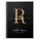 Modernes, schicke, elegantes Schwarz-Gold Monogram Initial Name Feminine Signature Script Spiral Notebook. Dieses einfache, minimalistische schlichte Farbdesign mit Ihrem Vornamen in einem hübschen handgeschriebenen swash Schwanz Schriftart Typografie (oder Kalligrafie), Monogramm Initial, Vollname und Text Linie Vorlage, leicht zu personalisieren. Große personalisierte Girly-Gabe für Geburtstagsparty, Hauswärmung, Hochzeit, SWEET 16 Geburtstagsparty, Brautparty, BABY Dusche, zurück zur Schule, Business, beruflich und für alle, die Lieben hübsche elegante minimalistische Stil.