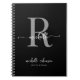 Modernes, schicke, elegantes Schwarz-Grau Monogramm Initial Name Feminine Signature Script Spiral Notebook. Dieses einfache, minimalistische schlichte Farbdesign mit Ihrem Vornamen in einem hübschen handgeschriebenen swash Schwanz Schriftart Typografie (oder Kalligrafie), Monogramm Initial, Vollname und Text Linie Vorlage, leicht zu personalisieren. Große personalisierte Girly-Gabe für Geburtstagsparty, Hauswärmung, Hochzeit, SWEET 16 Geburtstagsparty, Brautparty, BABY Dusche, zurück zur Schule, Business, beruflich und für alle, die Lieben hübsche elegante minimalistische Stil.