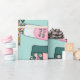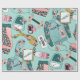 Whimsical Aquarell Fitness themed Muster Packpapier in Akzente von aquamarin, Gold und Rosa.