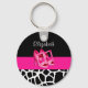 Stilvoll rosa und schwarz gedruckter Schlüsselanhänger mit einem grafischen Giraffenmuster in Schwarz/Weiß und einem Paar gürtelrosa Pumps. Personalisieren Sie dieses niedliche Modedesign, indem Sie den Namen einer Teeny Girly.
