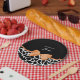 Girly Black & White Giraffe bedrucken Teller mit einem niedlich orangefarbenen Band in einem stilvollen Bogen. Personalisieren Sie dieses modische Tierdesign, indem Sie Ihren Namen hinzufügen. Flachbild, nicht eigentlicher Bogen.