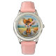 Kinderuhr aus Edelstahl mit rosa Lederarmband