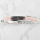 Girly, Elegant, Sylish, Light Rose Gold Glitzer Tropfen 2 Monogram Script personalisierten Namen mit Monogramm Kellner's Korkenzieher. Mit einem modernen Luxus-Imitat hellrosa Rose Gold Glitzer Tropfrahmen, einem großen doppelten (2) handgeschriebenen Monogramm Skript-Schriftart mit Swashes (in großen Initialen), und einem Serif Typ Schriftart Name in hellrosa auf schwarzem Hintergrund. Einfach zu personalisieren. Große Frauengeschenke für Freundin, Mutter, Geburtstag, Hochzeit, süße 16 Geburtstagsparty, Brautparty, Business und für alle, die hübsch glamouröse Glanzstücke mögen.