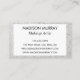 Diese schicke, gürtelige und gläserne Visitenkarte hat beidseitig einen grauen silbernen Glitzer-Glitzern-Hintergrund. Auf der Vorderseite der Visitenkarte steht Ihr Vorname in einem eleganten grauen Skript mit einem großen Monogramm Initial in Weiß dahinter. Dann auf der Rückseite sind Ihr Name, Ihr Jobtitel und Ihre Kontaktdaten mit einem weißen Hintergrund. Personalisieren Sie diese Visitenkarte einfach. Klicken Sie auf "Weiter anpassen", um die Textfarbe, den Schriftart und die Schriftgröße zu ändern. Diese Visitenkarte eignet sich perfekt für Makeup-Künstler, Friseure, Beauty-Berater, Event-Planer oder Salon-Besitzer.