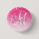 Girly Glam Hot Pink Glitzer Glitzern Monogram Name Button