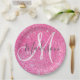 Girly Glam Hot Pink Glitzer Glitzern Monogram Name Pappteller