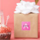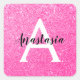 Girly Glam Hot Pink Glitzer Glitzern Monogram Name Quadratischer Aufkleber